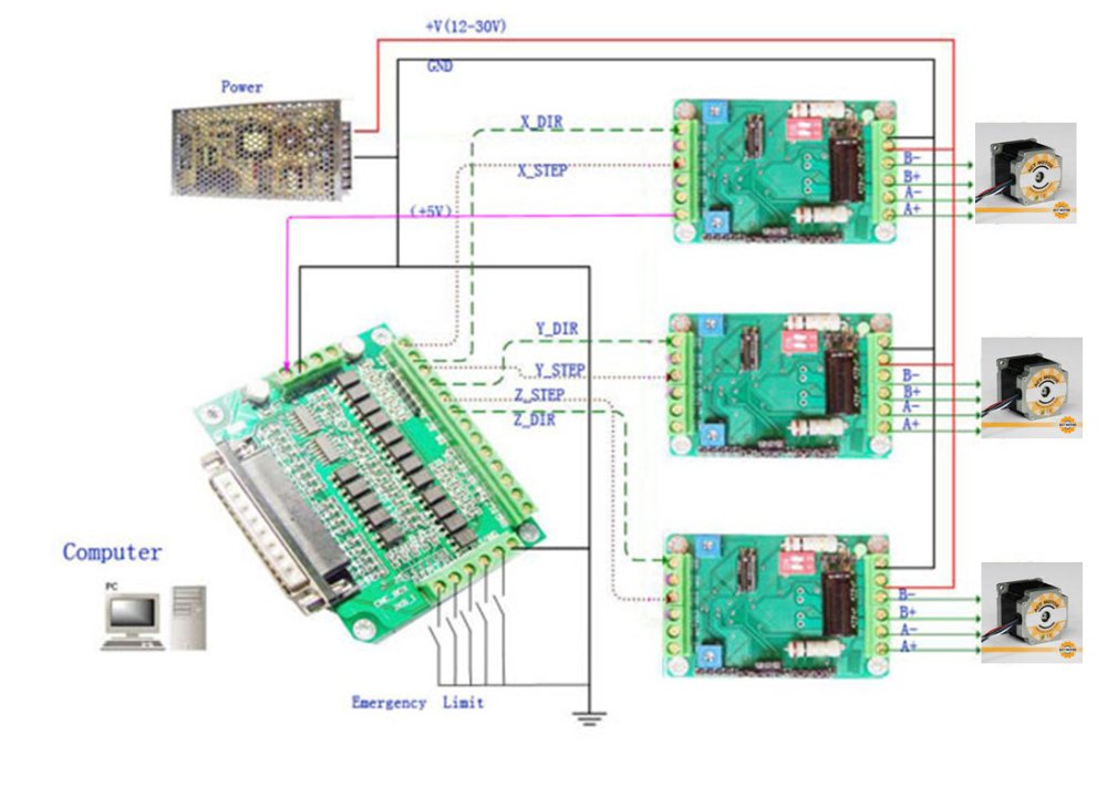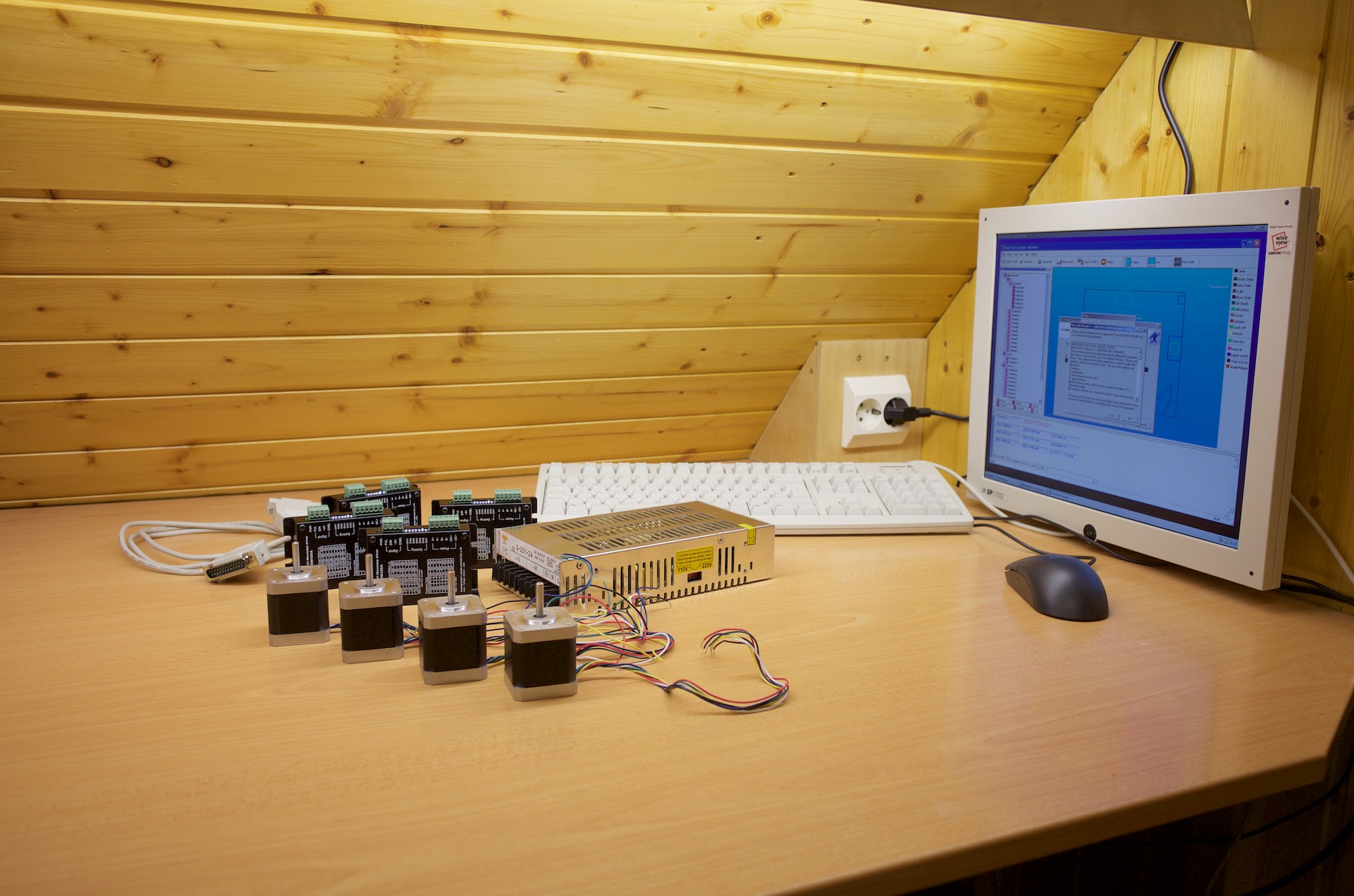 So, last night I got a Chinese looking package from Longs Motors (Hamburg Warehouse). The contents were limited to a power supply (24V / 8.3A), four stepper motor drivers (DM420A), four NEMA17 stepper motors 17HS8630N (12V 0.4A 1.8°/step) and a parallel DB25 breakout board.