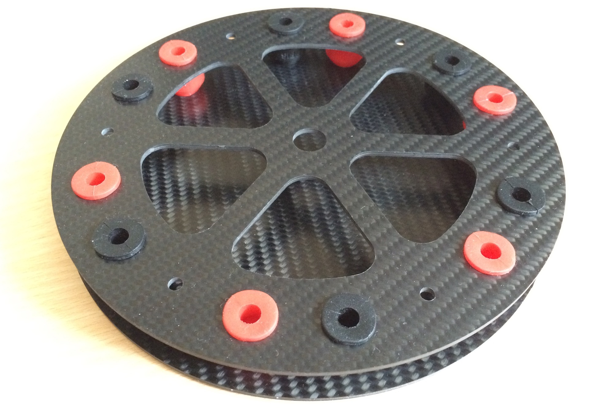 Another addition that I’ve done is the vibration dampening element that goes on the bottom of the aircraft. It will be attached with six M4 standoffs and screws to be able to safely lift heavier cargo such as cinema cameras or DSLR cameras.