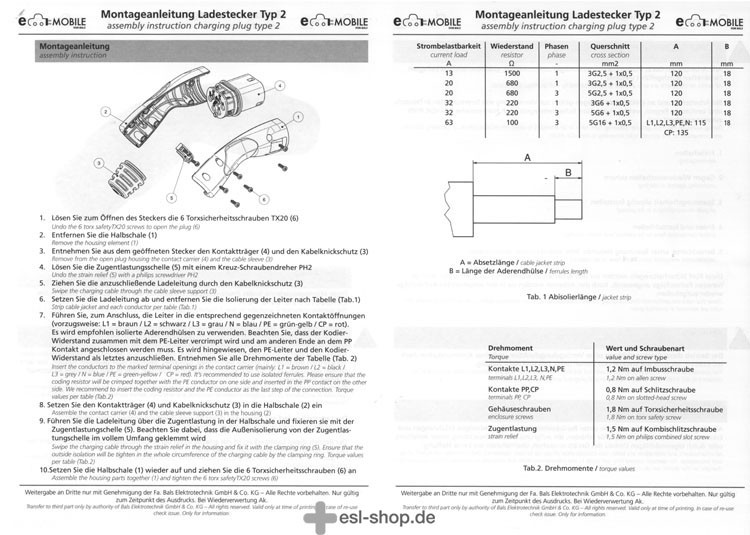After having spoken to the BMW iAgent when I returned the BMW i3, he told me that the BMW is capable of multiple charging setups. The most basic charging mode is 3680W (230V * 16A). Your regular household power outlet. Takes forever that way though. Next step up is doubling to 7360W. Nonetheless the only real power you can get to quickly charge your car (fast charge is dimmed above 67% usually) via AC is by using all three phases from the German power net. 400V and up to 32A grants us a maximum power of 22170W (sqrt(3) * 400V * 32A). Build a cable is easy. Get yourself a Mennekes type 2 plug, a CEE 32A plug and a 220 Ohm resistor for the signal. The resistor goes in between CP and PP. This enables the 22kW charging mode for a three-phase AC charging.